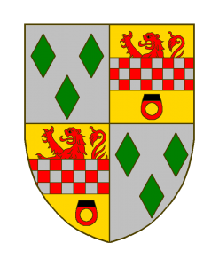 Écartelé: aux I et IV d’argent à trois losanges de sinople, aux II et III d’or à la fasce échiquetée d’argent et de gueules de trois tires,la fasce surmontée d’un lion issant de gueules, et accompagnée en pointe d’une bague du même, châtonnée de sable.