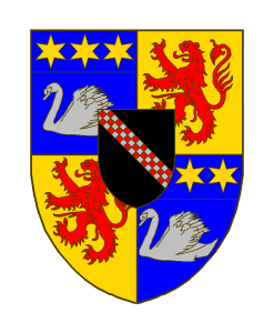 Écartelé: aux I et IV d’azur au cygne nageant d’argent, au chef cousu du champ chargé de trois étoiles d’or, aux II et III d’or au lion de gueules ; sur le tout de sable à la bande échiquetée d’argent et de gueules.