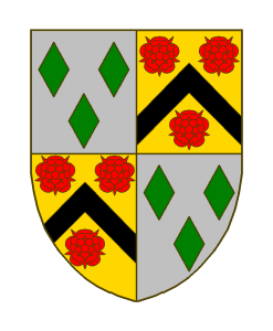 Écartelé: aux I et IV d’argent à trois losanges de sinople, aux II et III d’or au chevron de sable, accompagné de trois roses de gueules.