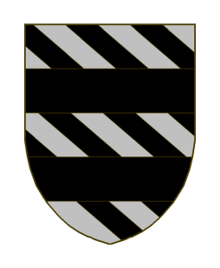 D’argent à 5 bandes de sable et deux fasces de même brochant.