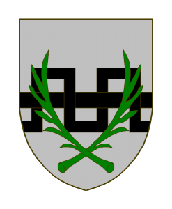 D’argent à un filet en fasce de sable, et un autre filet en forme de deux créneaux brochant, ou s’enroulant autour du premier filet aussi de sable, à deux palmiers en sautoir de sinople, brochant