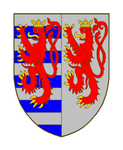 Parti au 1 burelé d’argent et d’azur, de dix pieces au lion de gueules, couronne, arme et lampassé d’or, à la queue fourchue et passée en sautoir (qui est Luxembourg), au 2 d’argent au lion de gueules, couronne, arme et lampassé d’or à la queue fourchue et passée en sautoir (qui est Limbourg).;DC 12.8.1980;134-135;Liège;1977;Aywaille Ernonheid Harze Sougne-Remouchamps