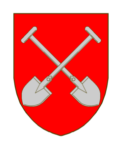 De gueules à deux pelles d’argent posées en sautoir (les fers vers le bas.)