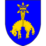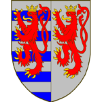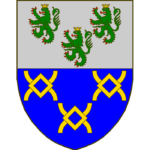 [D’azur à trois navettes de tisserand, deux en sautoir, la troisieme brochant en pal sur les deux autres, auxquelles est suspendue par une chain tissée, une toison, le tout d’or.]