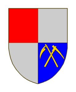 Écartelé au 1 de gueules, aux 2 et 3 d’argent, au 4 d’azur chargé d’un pic de mineur et d’une faux d’or passes en sautoir.