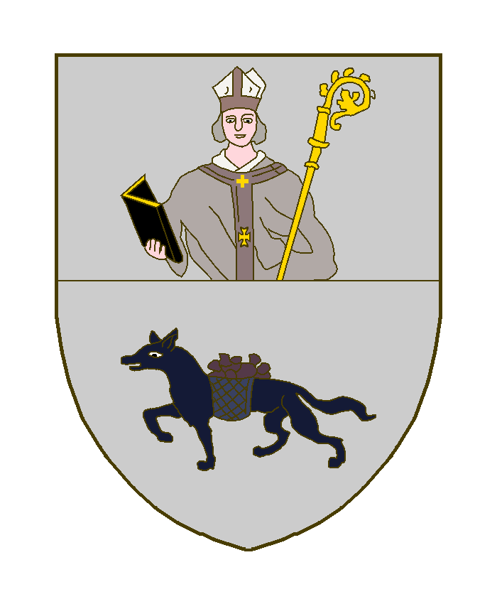 Coupé en chef d’argent à un buste de Saint Remacle au naturel, mitré portant dans la dextre une chapelle et tenant de la senestre une crosse, le crosseron tourne vers l’exterieur, et en pointe cousu d’argent à un loup passant, bâté, les deux paniers remplis de pierres, le tout au naturel.