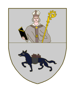 Coupé en chef d’argent à un buste de Saint Remacle au naturel, mitré portant dans la dextre une chapelle et tenant de la senestre une crosse, le crosseron tourne vers l’exterieur, et en pointe cousu d’argent à un loup passant, bâté, les deux paniers remplis de pierres, le tout au naturel.