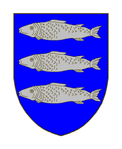 D’azur à trois poissons nageant d’argent, l’un sur l’autre.