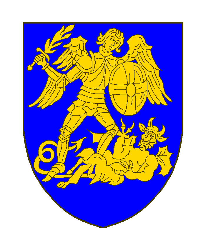 D’azur à un saint Michel ailé brandissant de la dextre une épée flambayante, de la senestre une rondache, et terrassant le démon, le tout d’or.