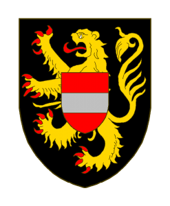 D’or au lion de sable armé et lampassé de gueules; de gueules à la fasce d’argent sur le tout.