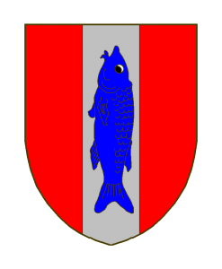 In rot ein silberner Pfahl, belegt mit einem senkrecht gestellten blauen Fisch.