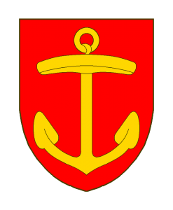 In rotem Schildbord in Silber ein rotbewehrter und -bezungter schwarzer Löwe, belegt mit einem goldenen Herzschild, darin ein rotbewehrter schwarzer Adler.
