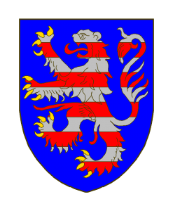 D’azur au lion (rampant) burelé d’argent et de gueules, armé d’or.