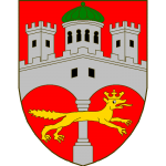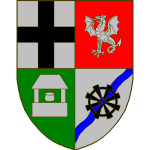 Das Wappen zeigt im geteilten Schild oben in Gold einen wachsenden schwarzen rot bewehrten Löwen, unten in Schwarz drei goldene Ringe.