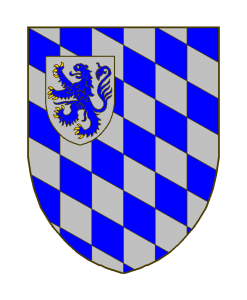 Schräg gerautet von Silber und Blau; oben rechts aufgelegt ein silberner Schild, darin ein golden bewehrter blauer Löwe.