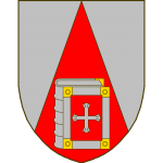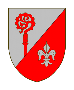 Taillé d’argent et de gueules: au chef une crosse d’abbé de gueules naissante de la partition, en pointe une fleur de lis d’argent.