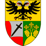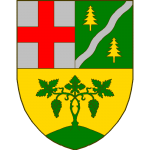 Von Silber und Rot schräglinks geteilt, vorne eine emporkommende Krümme, hinten eine silberne Lilie