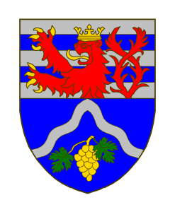 Geteilt, ober in Silber zwei blaue Balken, belegt mit einem wachsenden, roten, goldgekrönten, doppelschwänzigen Löwen, unten in Blau ein silberner Wellensparren eine goldene Rebe einschießend.