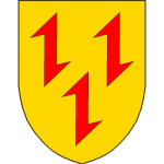 - Une étoile de gueules à 6 rais, environnée et quelque peu couverte par un nuage au naturel.