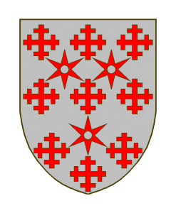 D’argent à trois molettes de gueules posées 2-1, accompagnées de 9 croisettes recroisettées du même, 3 en chef, 3 en fasce, 3 en pointe, ces dernières posées 2-1.