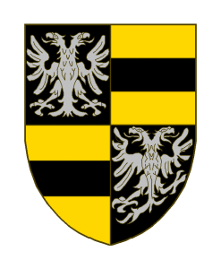 Écartelé, aux 1 et 4 de sable à l’aigle éployée d’argent (Saarwerden); aux 2 et 3 d’or à la fasce de sable (Moers).Cimier: