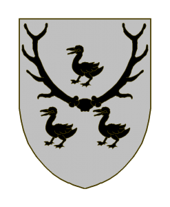 D’argent au massacre de sable, accompagné de trois canettes mal ordonnées du même.
