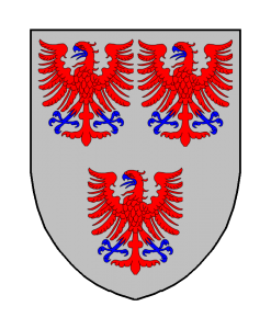 D’argent à trois aigles de gueules, becquées et membrées d’azur.