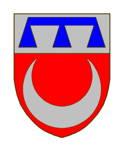 De gueules au croissant montant d’argent, au chef du même chargé d’un lambel d’azur.