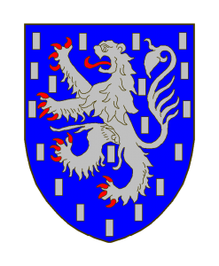 D’azur au lion d’argent, armé et lampassé de gueules, le champ semé de billettes d’argent.