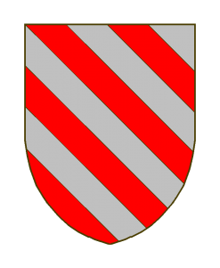 Bandé d’argent et de gueules de 8 pièces.