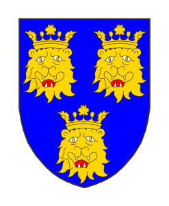 D’azur à trois têtes de léopards couronnés d’or, lampassés de gueules. (A l’origine, les armes étaient: De gueules à trois têtes de lion arrachées d’argent, lampassées et couronnées d’or. D’après les sceaux, c’est l’Empereur Sigismond qui, le premier, a fait représenter ces têtes de face. Le changement d’émaux semble dater du XVIIe siècle.)