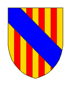 Majorque Sizes: 150 × 150 / 247 × 300 / 700 × 850 Royaume de Majorque D’or à quatre pals de gueules, à la bande d’azur brochant.