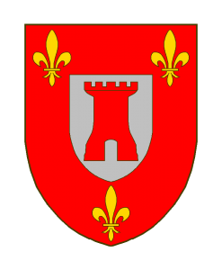 De gueules à l’écusson d’argent chargé d’une tour ouverte de gueules et accompagnée de trois fleurs de lis d’or