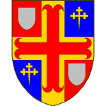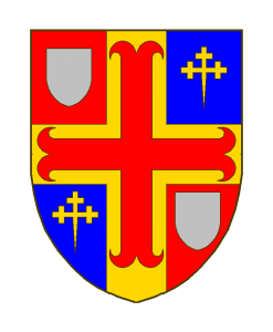 Ecartelé de gueules et d’azur à la croix d’or brochant, surchargée d’une croix ancrée de gueules cantonée aux I et IV d’un écusson d’argent, aux II et III d’une croisette recroisettée au pied fiché d’or
