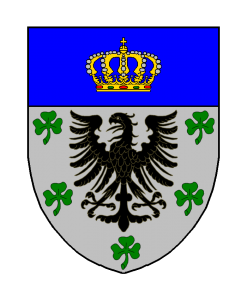 D’argent à l’aigle de sable accompagnée en chef, aux flancs et en pointe de cinq trèfles de sinople posés 2-2-1; au chef d’azur chargé d’une couronne grand-ducale d’or