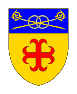 D’or à la croix ancrée de gueules, au chef d’azur chargé de deux crosses d’abbé d’or, garnis d’argent, affrontées et posées en sautoir, liées par deux annelets entrelacés d’argent