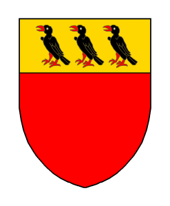 De gueules au chef d’or chargé de trois merles de sable becqués et membrés de gueules, rangés en fasce