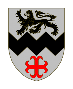 D’argent à la fasce vivrée de sable accompagnée en chef d’un lion passant du même, en pointe d’une croix ancrée de gueules