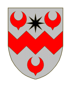D’argent à la fasce vivrée de deux pointe de gueules, accompagnée de trois feuilles de nénuphar du même, deux en chef, une en pointe, celles du chef accostant une étoile à six rais de sable