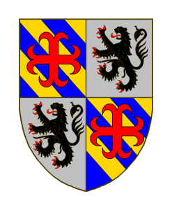 Ecartelé: aux I et IV bandé d’or et d’azur de six pièces à la croix ancrée de gueules brochante; aux II et III d’argent au lion de sable armé et lampassé de gueules