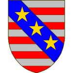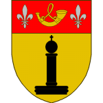 D’or au sautoir de gueules cantonné de quatre quintefeuilles de gueules, feuillées et boutonnées de sinople