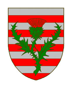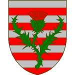 Burelé d’argent et de gueules au chardon de sinople fleuri de gueules brochant en pal