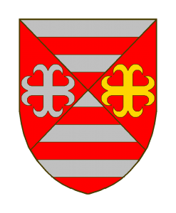 Ecartelé en sautoir, aux I et IV d’argent à deux fasces de gueules, au II de gueules à la croix ancrée d’argent, au III de gueules à la croix ancrée d’or