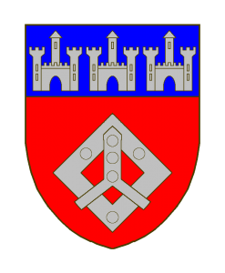 De gueules au fermail en losange d’argent, l’aiguillon vers le chef, au chef cousu d’azur chargé de trois châteaux d’argent, à deux tours crénélées et au donjon plus élevé au toit pointu