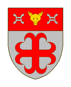 D’or à la croix ancrée de gueules, au chef du même chargé d’un masque de renard d’or accosté de deux anilles d’argent