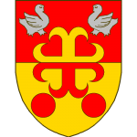 D’argent à l’aigle de sable, armé, bequée et languée de gueules, au chef du même chargé de trois losanges d’or
