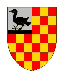 Echiqueté de gueules et d’or, au franc-quartier d’argent chargé d’un oiseau de sable posé sur une terrasse de sinople.