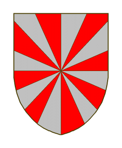 Gironné d’argent et de gueules de seize pièces.
