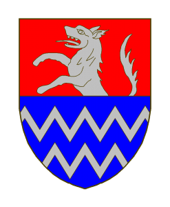 Coupé, au I de gueules au loup naissant d’argent, mouvant du Coupé, au II d’azur à deux fasces vivrées d’argent.