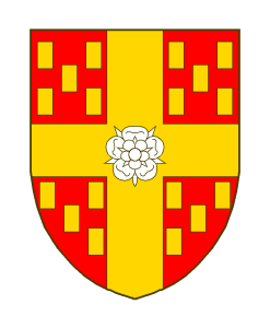 les armes d’Autel (de gueules à la croix d’or accompagnée de 20 billettes du même, 5 par quartier, posées en sautoir ou 18 billettes 5 aux quartiers du chef, 4 aux quartiers de la pointe.) avec une rose en abîme.